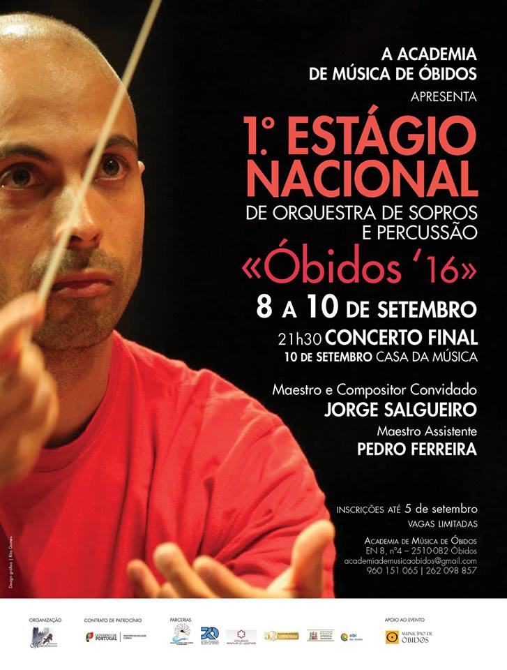 A Academia de Música de Óbidos dinamiza, na semana de 8 a 10 de setembro, o 1º Estágio Nacional de Orquestra de Sopros e Percussão, “Óbidos ´16”. No dia 10 de setembro, decorrerá um Concerto Final para mostra do trabalho desenvolvido pelos participantes nesta iniciativa.