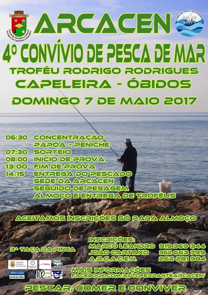 A Associação Recreativa e Cultural Amigos da Capeleira e Navalha (ARCACEN) organiza o 4º Convívio de Pesca de Mar, Troféu Rodrigo Rodrigues, no próximo domingo, dia 7 de maio, em Peniche.