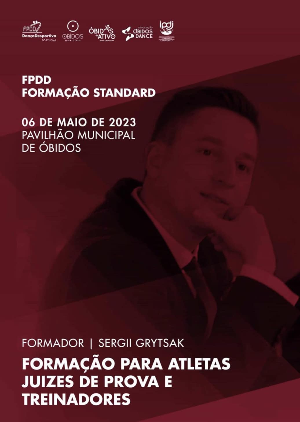 A Federação Portuguesa de Dança Desportiva (FPDD) irá promover, no dia 6 de Maio de 2023 em Óbidos, uma ação de formação com a designação “Danças Standard: Aspetos Elementares da Execução Técnica”. A iniciativa terá como professor responsável Sergii Grytsak, da Ucrânia.