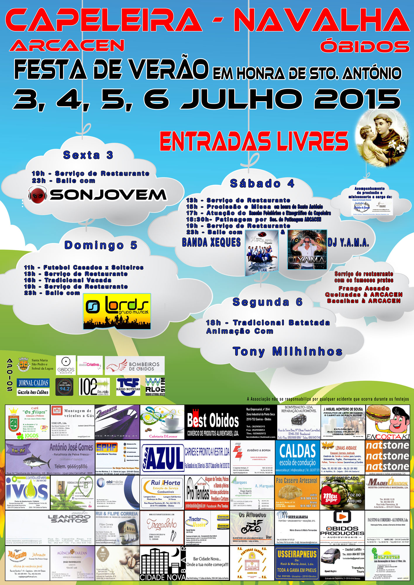 Decorre de 3 a 6 de julho, na Capeleira e Navalha, localidades do concelho de Óbidos, a Festa de Verão, em honra de Santo António. Esta é uma organização da ARCACEN, coletividade local, sendo as entradas livres.