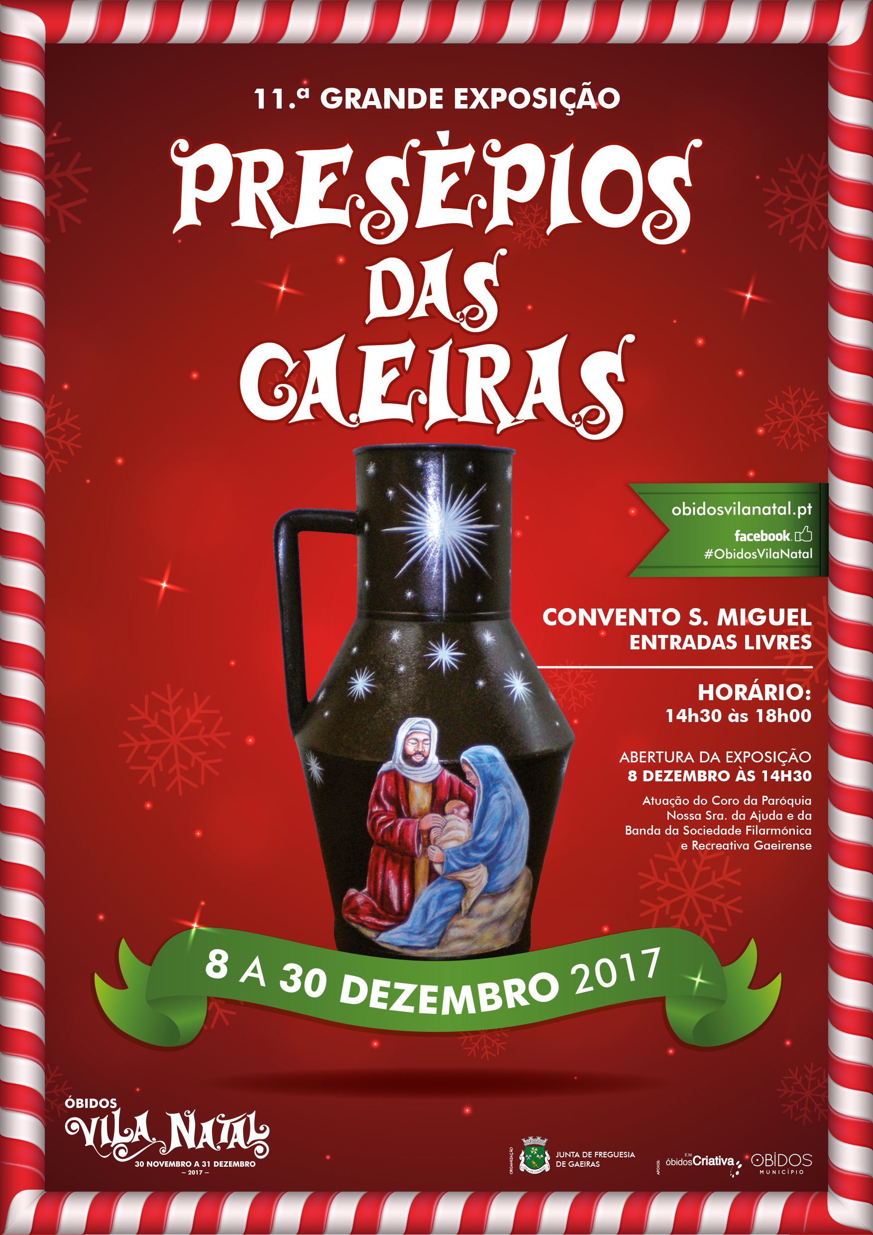 A Grande Exposição de Presépios será inaugurada às 14h30, do dia 8 de Dezembro, com a atuação do Coro da Paróquia de Nossa Senhora da Ajuda e da Banda da Sociedade Filarmónica e Recreativa Gaeirense.