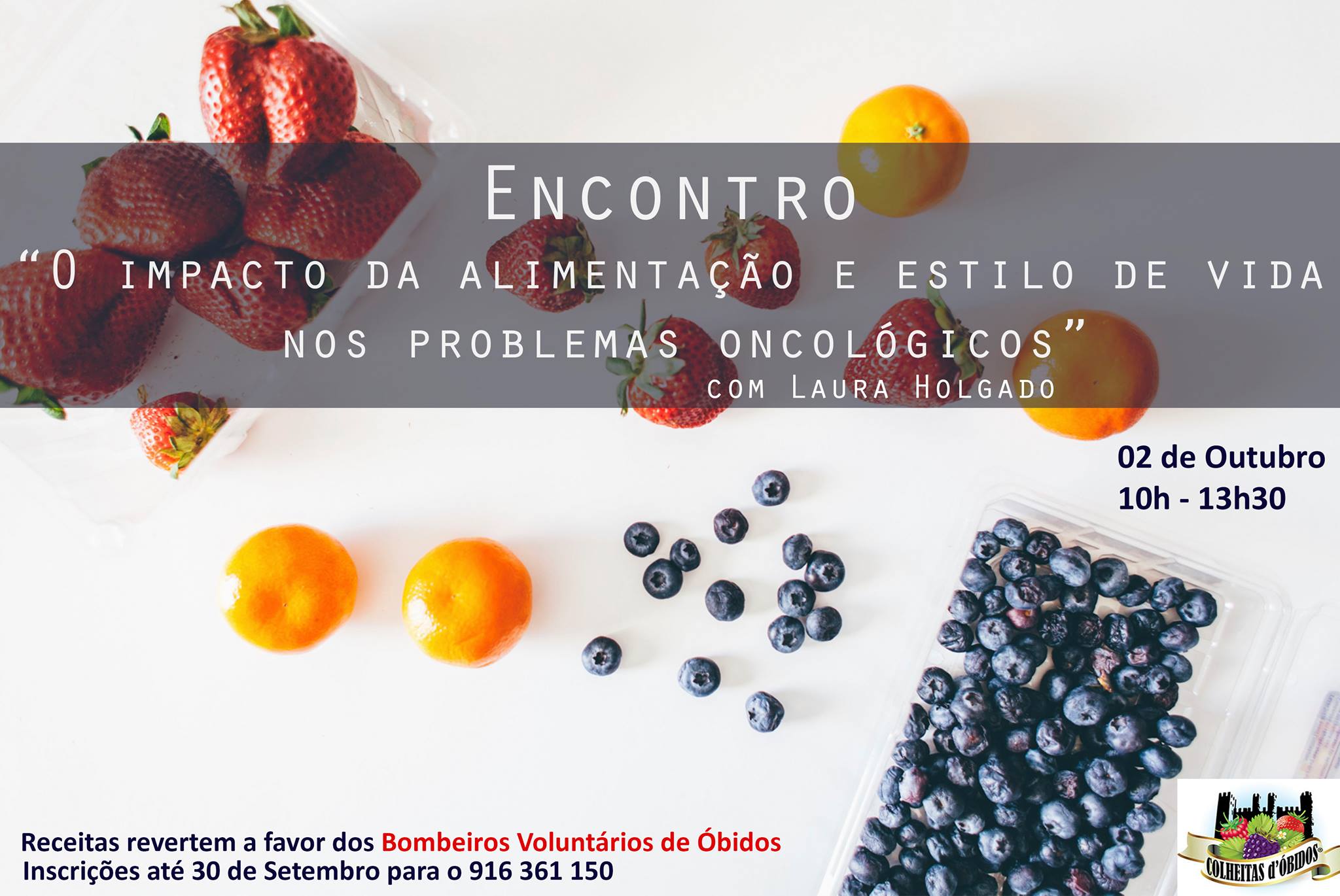 A “Colheitas D´Óbidos” vai realizar, no próximo dia 2 de outubro, entre as 10h00 e as 13h30, um Encontro sobre “O Impacto da Alimentação e Estilo de Vida nos Problemas Oncológicos”. O valor angariado reverte na totalidade para os Bombeiros Voluntários de Óbidos.