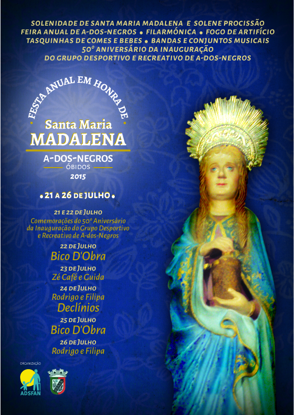 Os Festejos em Honra de Santa Maria Madalena 2015, padroeira da Freguesia de A-dos-Negros, decorrerão de 21 a 26 de Julho de 2015, na localidade de A-dos-Negros (Óbidos), organizados conjuntamente pela Associação de Desenvolvimento Social da Freguesia de A-dos-Negros (ADSFAN) e o Grupo Desportivo e Recreativo de A-dos-Negros (GDRAN).