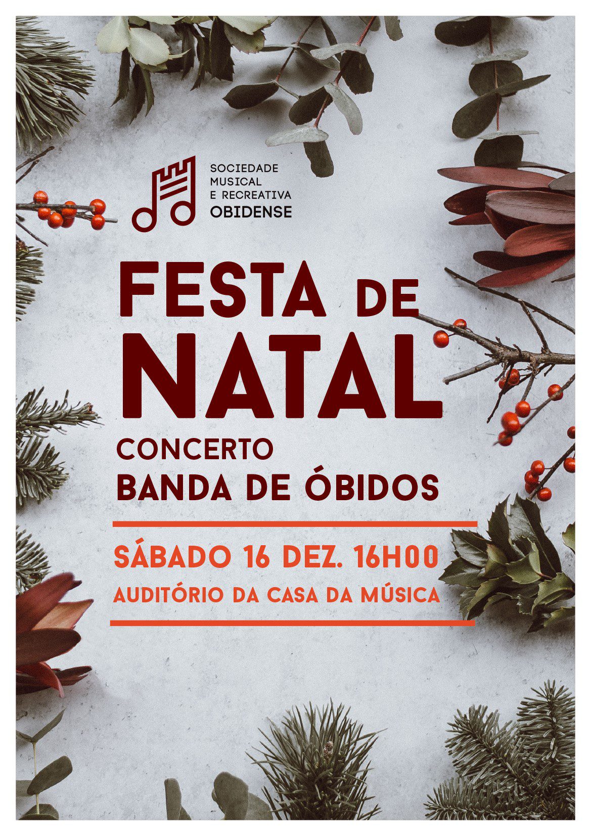 A Sociedade Musical e Recreativa Obidense (SMRO) dá o seu tradicional Concerto de Natal, no próximo dia 16 de Dezembro (sábado), com início às 16h00, no Auditório Municipal Casa da Música.