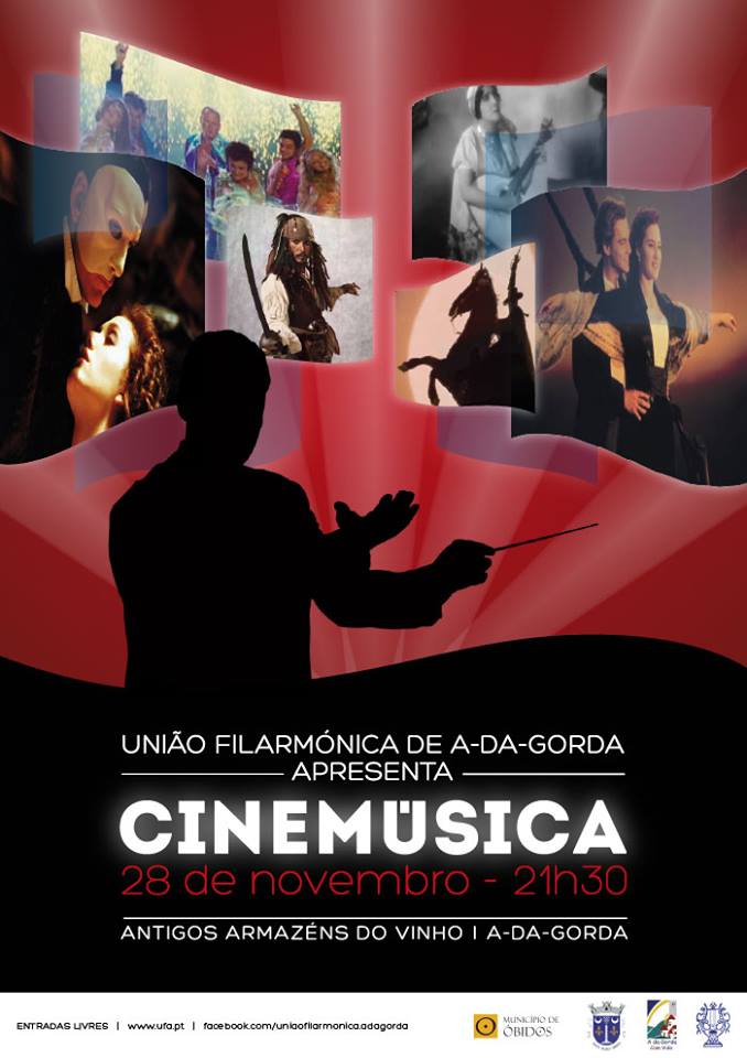 A União Filarmónica de A-da-Gorda (UFA) apresenta, em parceria com o Município de Óbidos e a União das Freguesias de São Pedro, Santa Maria e Sobral da Lagoa, o espetáculo Cinemúsica, um evento em homenagem ao outono. O concerto irá decorrer nos Antigos Armazéns do Vinho, em A-da-Gorda, no próximo dia 28 de novembro, pelas 21h30.