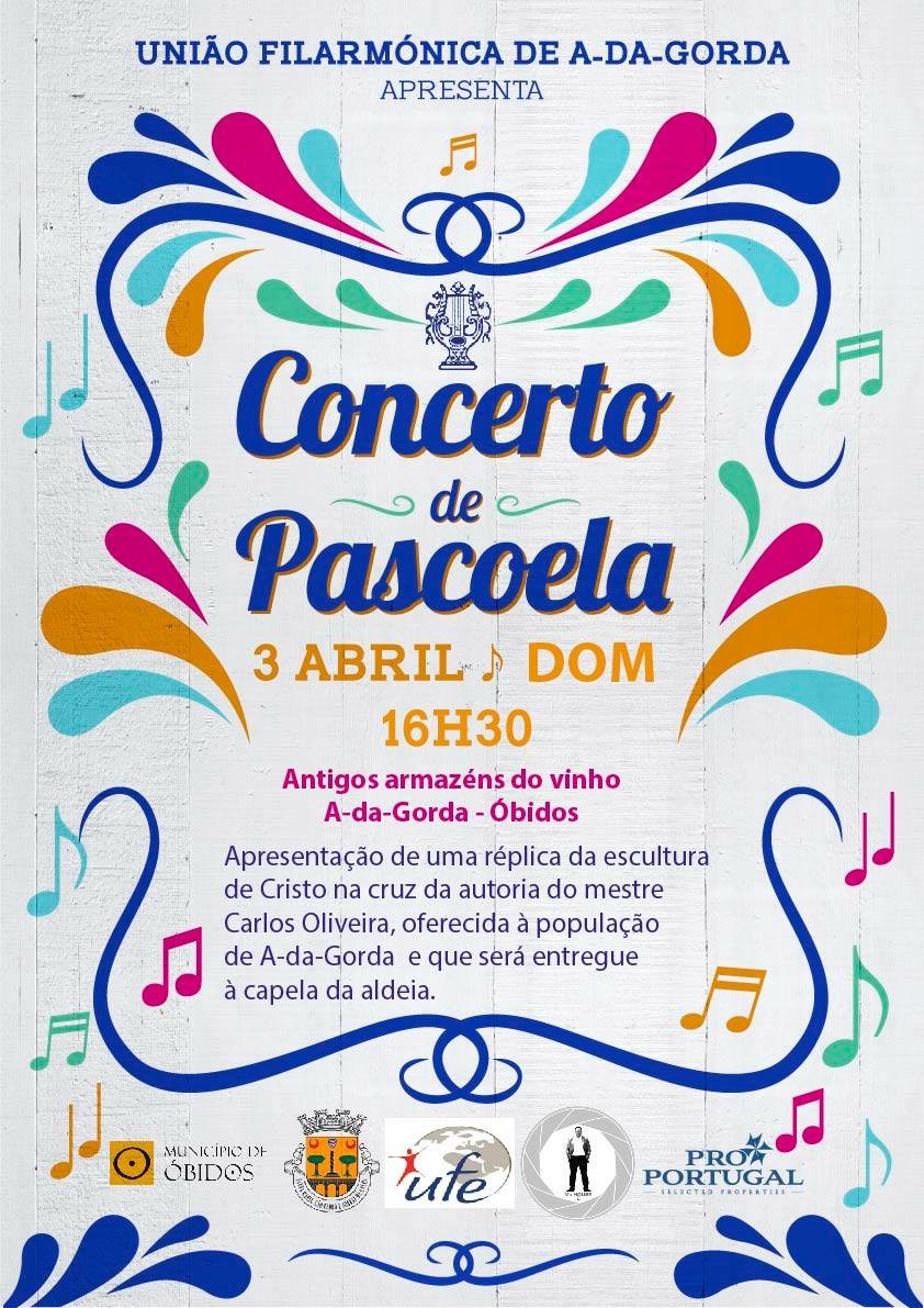 A União Filarmónica de A-da-Gorda vai realizar o seu Concerto de Pascoela, no próximo dia 3 de abril, pelas 16h30, nos antigos Armazéns do Vinho, em A-da-Gorda, Óbidos.
