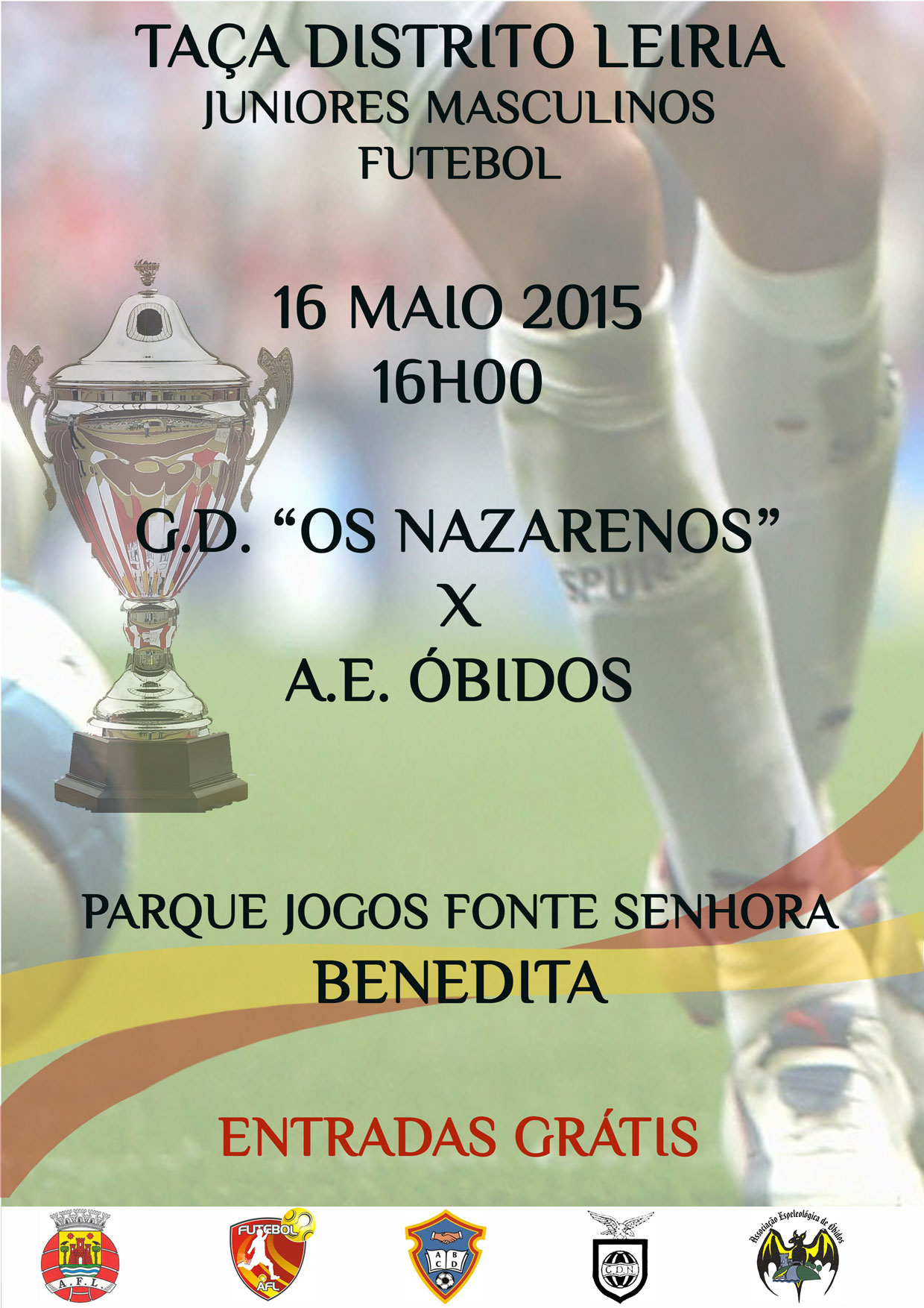 O palco da final da Taça Distrito de Leiria de Juniores, em futebol, irá ser no Parque de Jogos Fonte da Senhora, na Benedita, no próximo dia 16 de maio, com início às 16h00. A final será disputada entre o Grupo Desportivo “Os Nazarenos” e a Associação Espeleológica de Óbidos.