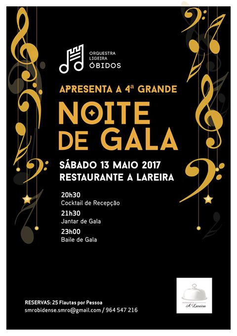 A Orquestra Ligeira de Óbidos, da Sociedade Musical e Recreativa Obidense, apresenta a sua 4.ª Grande Noite de Gala, que irá decorrer no próximo dia 13 de maio, pelas 20h30, no restaurante “A Lareira” (Caldas da Rainha).