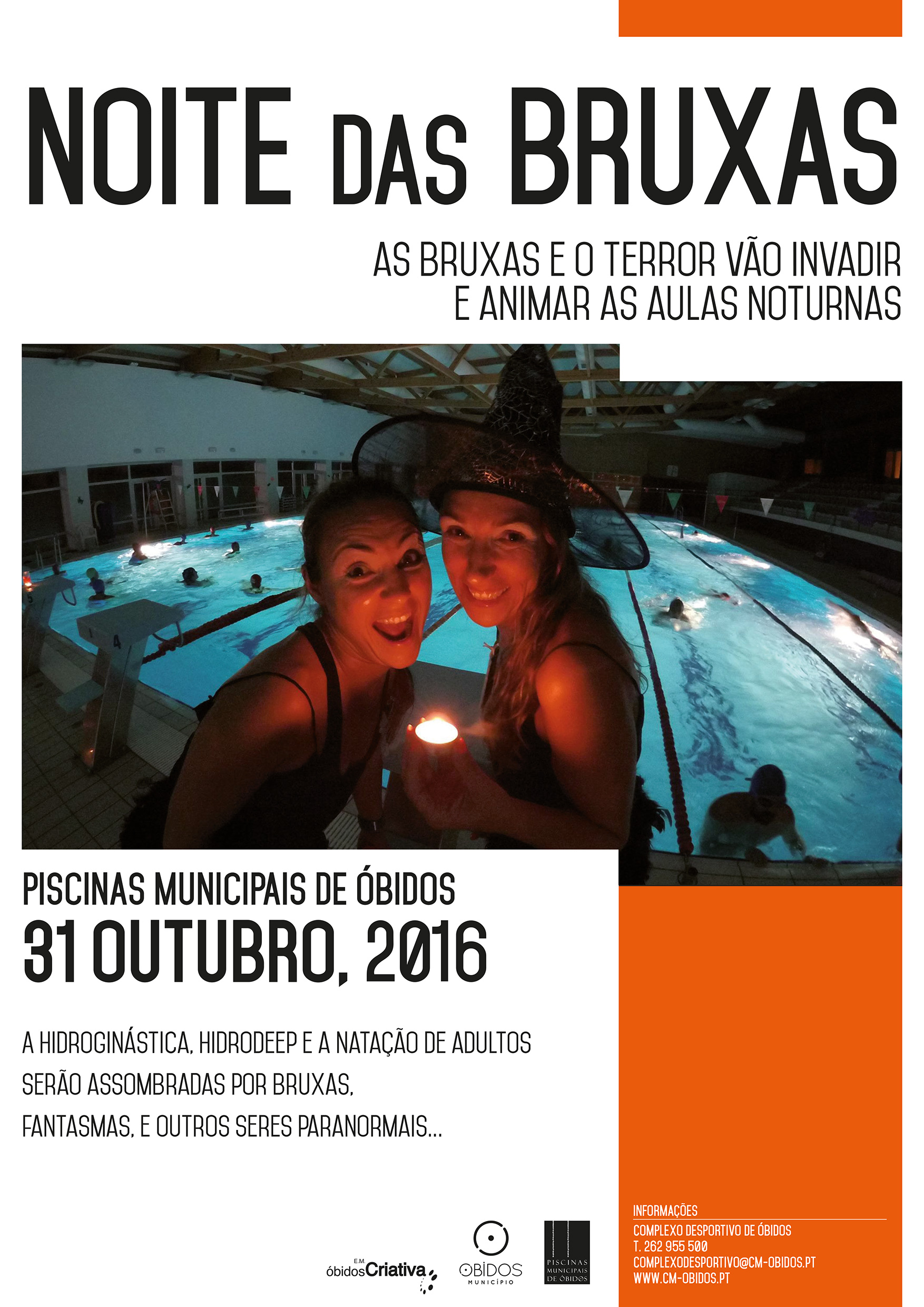 As Piscinas Municipais de Óbidos vão realizar, mais uma vez, uma atividade ligada ao Halloween. A “Noite das Bruxas”, que acontece dia 31 de outubro, segunda-feira, é o lema para aulas, onde as “bruxas e o terror vão invadir e animar as aulas noturnas.