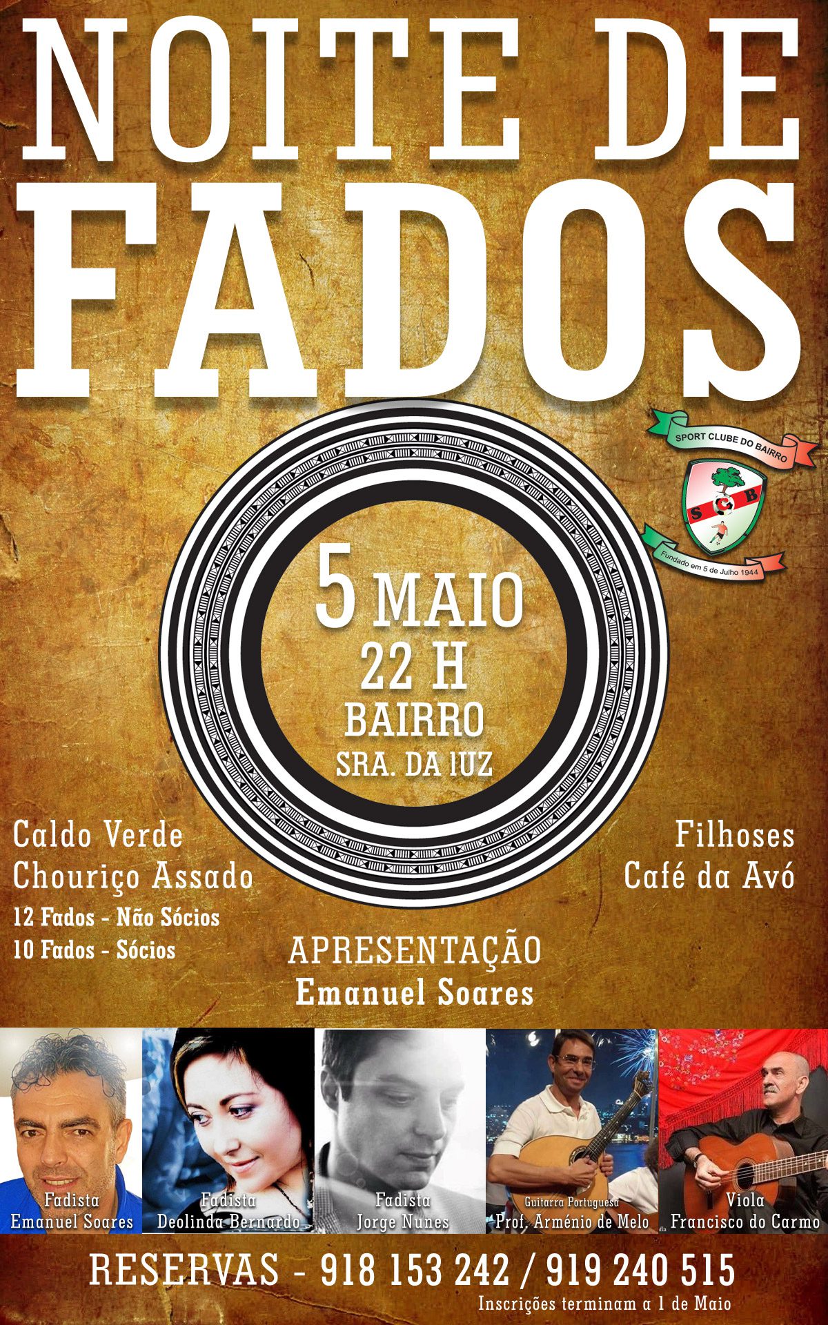 Noite de Fados, dia 5 de Maio, no Bairro Sr.ª da Luz