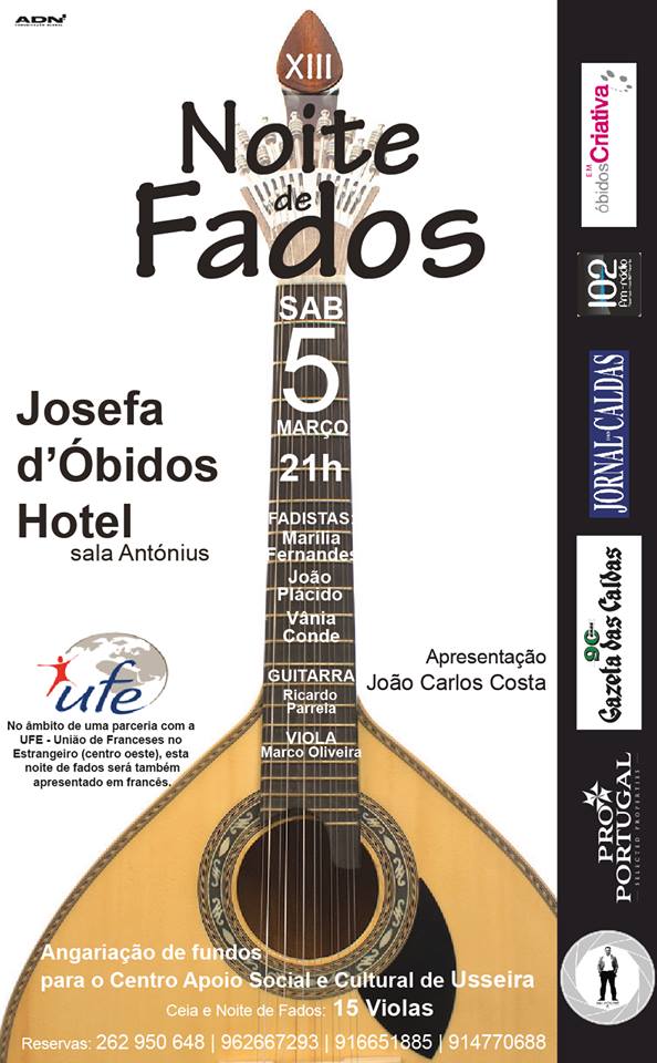 Os possíveis lucros revertem para o Centro Apoio Social e Cultural da Usseira (Óbidos). No âmbito de uma parceria com a UFE – União de Franceses no Estrangeiro (Centro Oeste), esta Noite de Fados será também apresentada em francês.