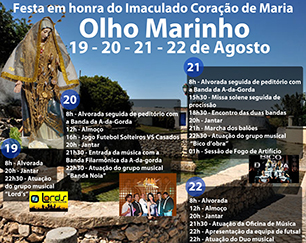Há festa na localidade de Olho Marinho, de 19 a 22 de agosto de 2016, em Honra do Imaculado Coração de Maria.