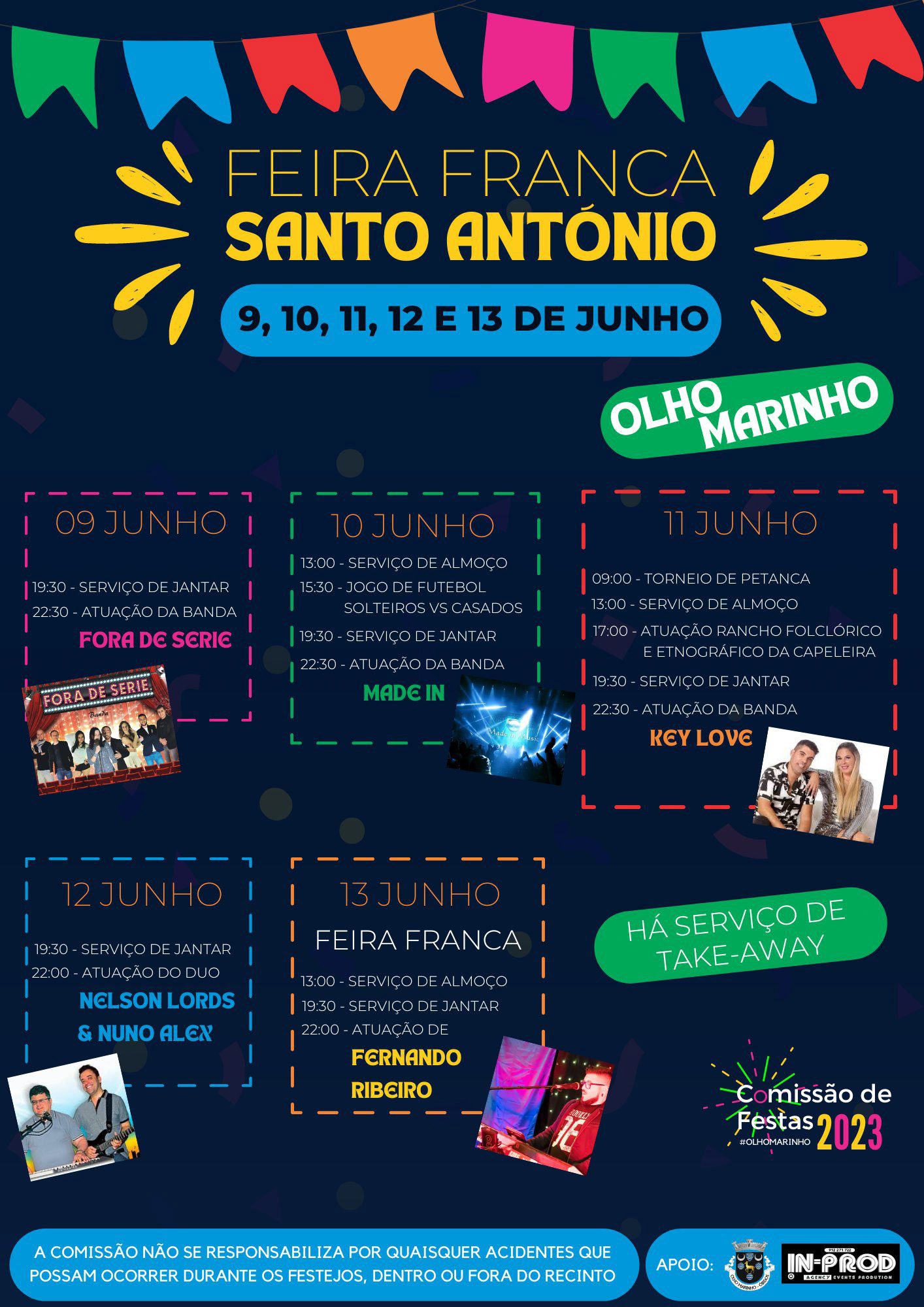 Com uma forte componente de animação, a festa conta ainda com uma Feira Franca no dia 13 de Junho, dia de Santo António. No arraial haverá igualmente um restaurante com serviço de almoços e jantares (com serviço take-away).