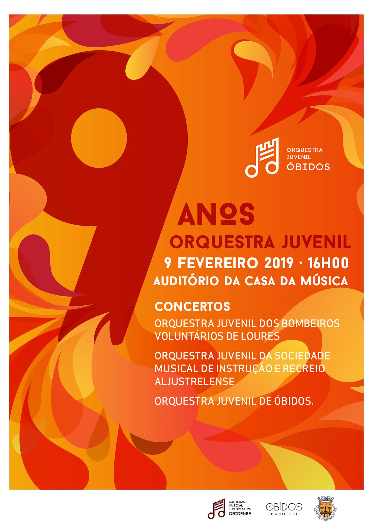 No próximo dia 9 de fevereiro, sábado, a Orquestra Juvenil da Sociedade Musical e Recreativa Obidense (SMRO) celebra o seu 9º aniversário com um concerto realizado no Auditório da Casa da Música, pelas 16 horas.