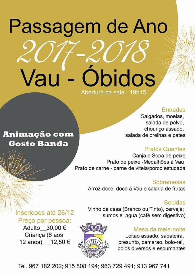 A Associação Recreativa Desportiva e Cultural Vauense – ARDCV, Vau, Óbidos, organiza a Passagem de Ano 2017/2018.