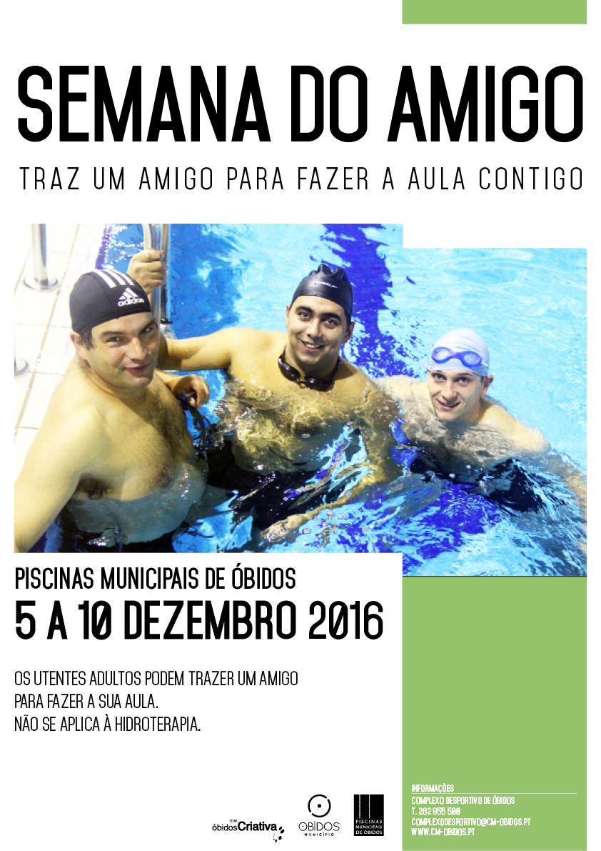 A Semana do Amigo está em destaque nas Piscinas Municipais de Óbidos (PMO) até 10 de dezembro de 2016.