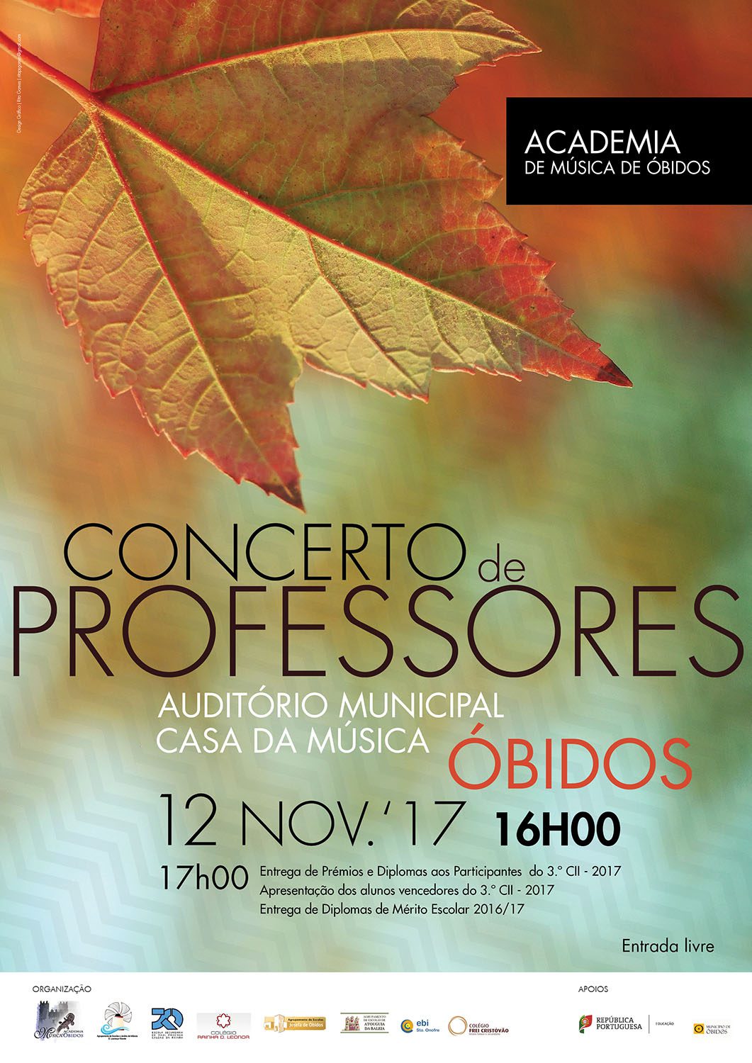No decorrer do Concerto serão entregues, pelas 17h00, diplomas e prémios aos participantes, aos melhores alunos e de Mérito Escolar da Academia, do período 2016/2017.