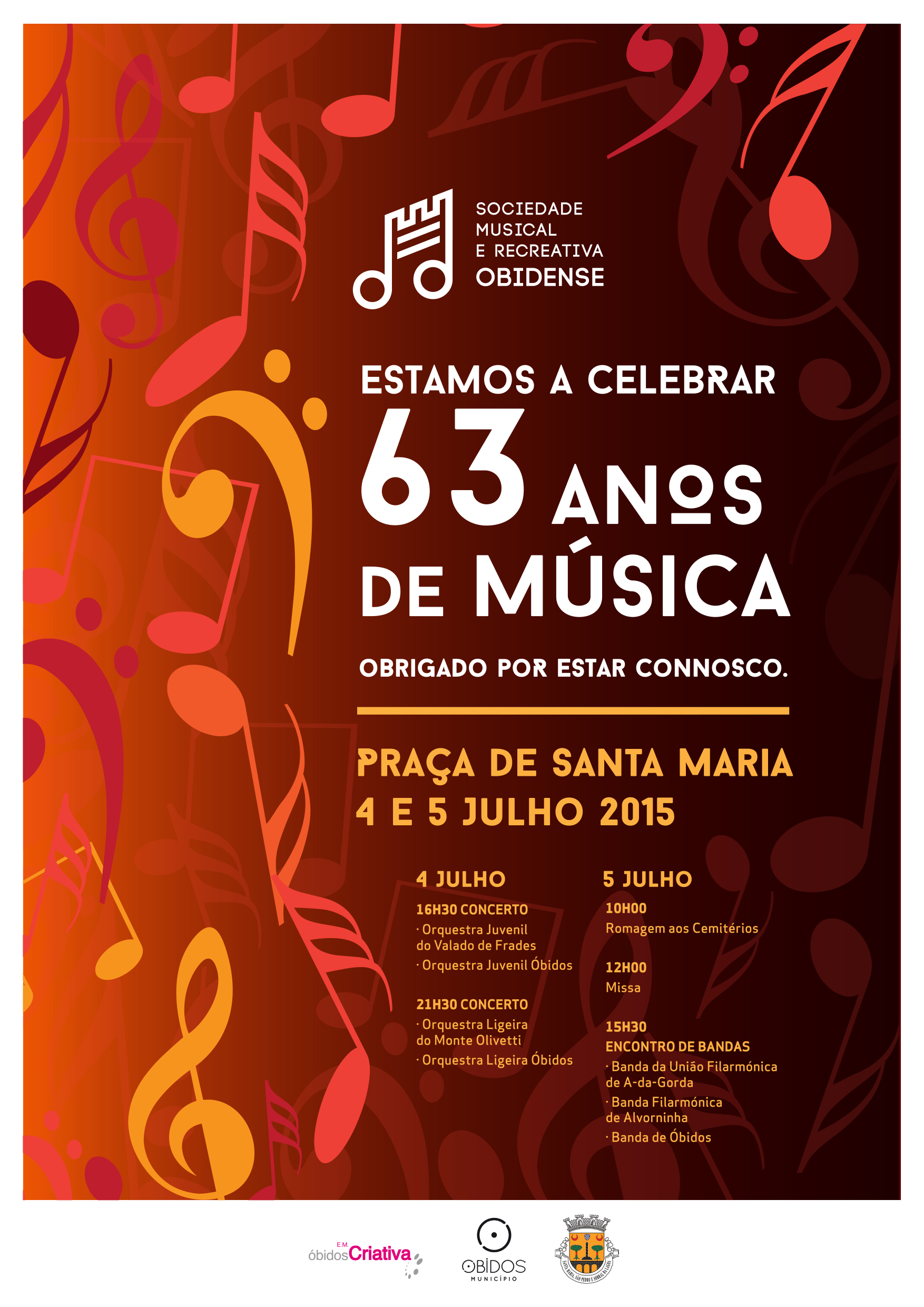 A Sociedade Musical e Recreativa Obidense (SMRO) celebra, nos próximos dias 4 e 5 de julho, o seu 63.º Aniversário.