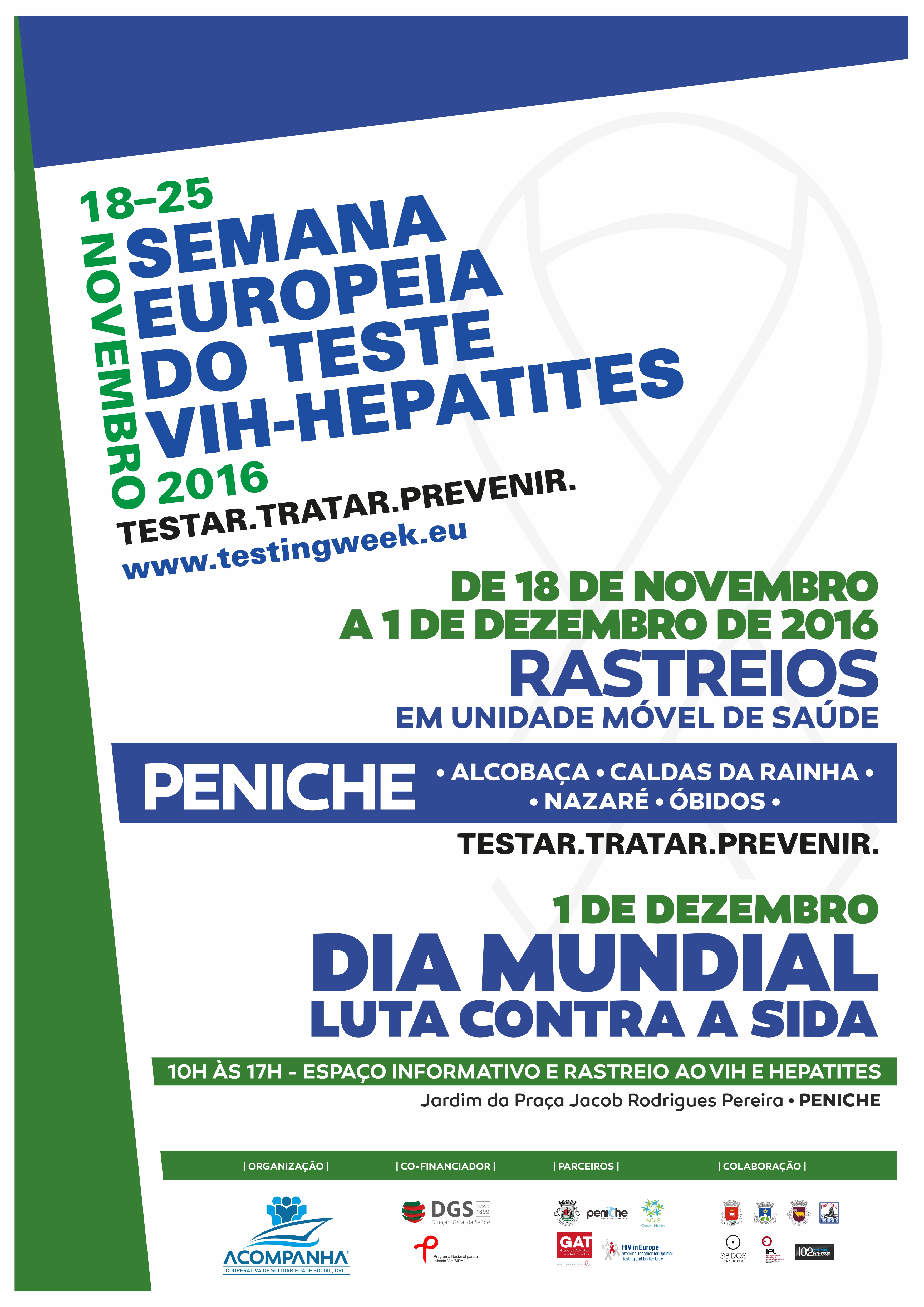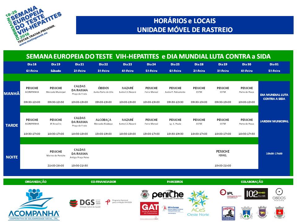 Acompanha CRL. vai promover, em parceria com o Agrupamento dos Centros de Saúde da região Oeste Norte, a Semana do Teste VIH e Hepatites, que decorre de 18 a 25 de novembro.